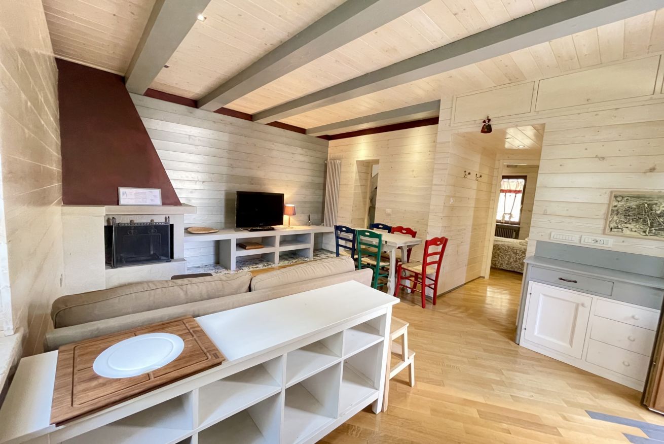 La Dimora è un elegante appartamento tipico in legno, finemente ristrutturato e curato in ogni dettaglio. Gli interni, interamente rivestiti in legno, creano un ambiente caldo e rilassante, tipico delle baite di montagna.