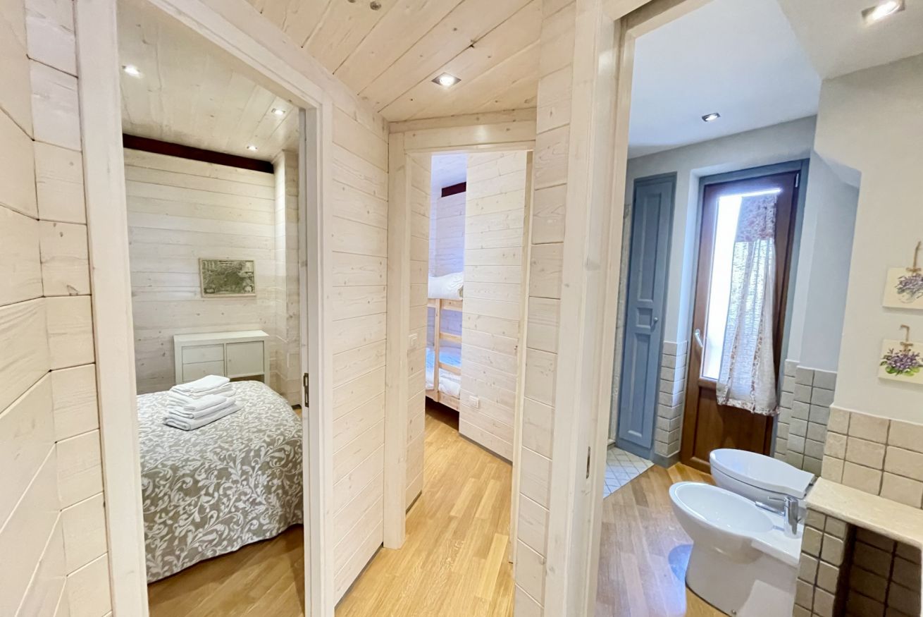 -Due camere da letto: una matrimoniale con grande armadio e una con letto a castello per due ospiti.