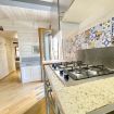 -Cucina moderna completamente attrezzata: forno, frigorifero, congelatore, utensili e stoviglie.