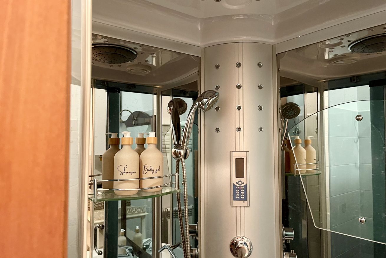 Completa il piano un bagno spazioso con doccia idromassaggio e finiture di lusso.