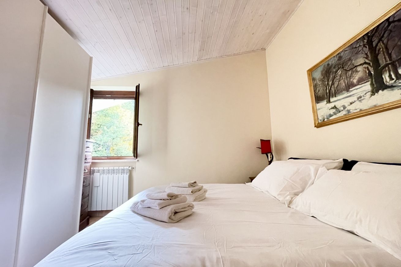 - una camera matrimoniale con letto king size, TV, grande armadio e vista sul bosco di Roccaraso;