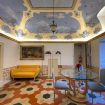 L’accesso è completamente privato e conduce a una prima stanza affrescata, arricchita da pezzi d’arredo unici. Qui è presente un tavolino per pranzi o banchetti, con la possibilità di usufruire di servizi esclusivi come chef privato o transfer (a pagamento).